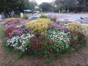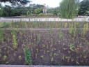 雨降りの蒸し暑い朝でした。噴水北側と南側の花壇がすっきりとリニューアルされました。