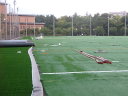 土曜日朝には北側まで済んでいたテラスポ鶴舞の人工芝の貼り替えが猛暑の週末も行われたようで南側もできていました。