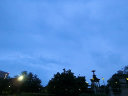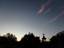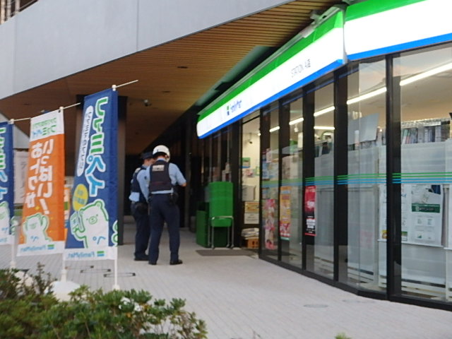 朝焼けの空に金星(→)がうっすらと見られました。公園南側の「STATION Ai」のファミマにパトカーと警官が数名おみえで何かあったようでした。