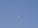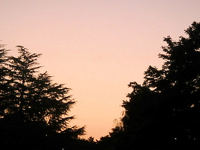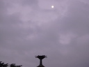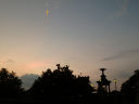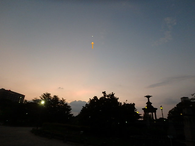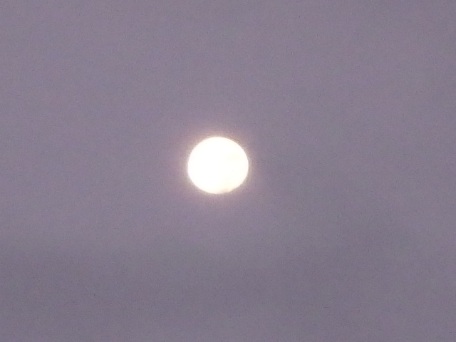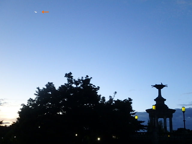 晴れて蒸し暑い夜明けの空にぺらぺらの月(↑)がうっすらと見られました。