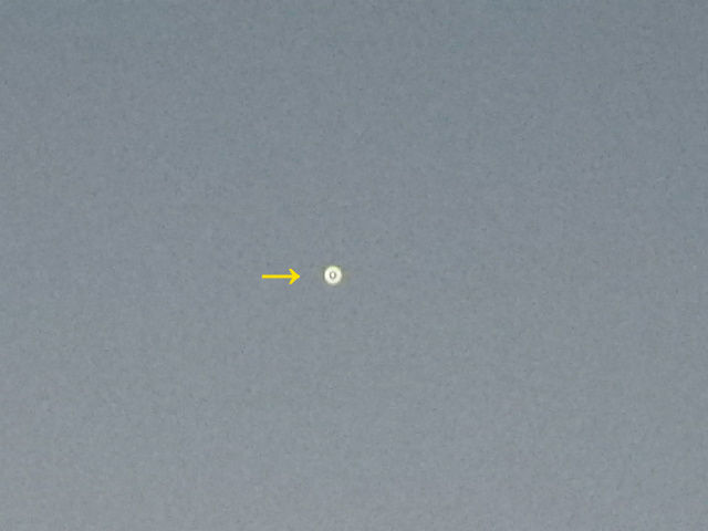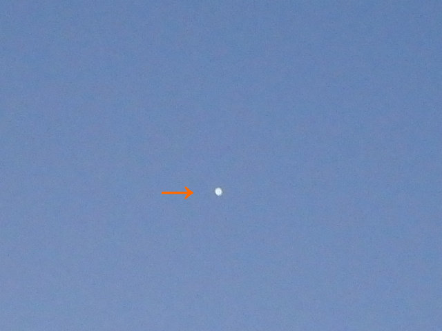快晴で涼しい朝焼けの空に金星(→)がうっすらと見られました。