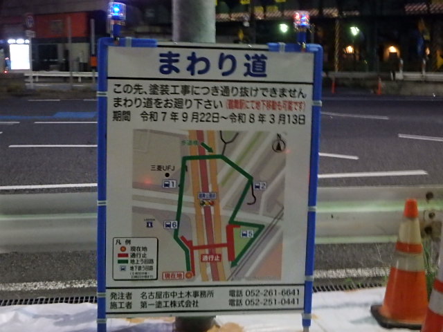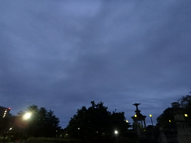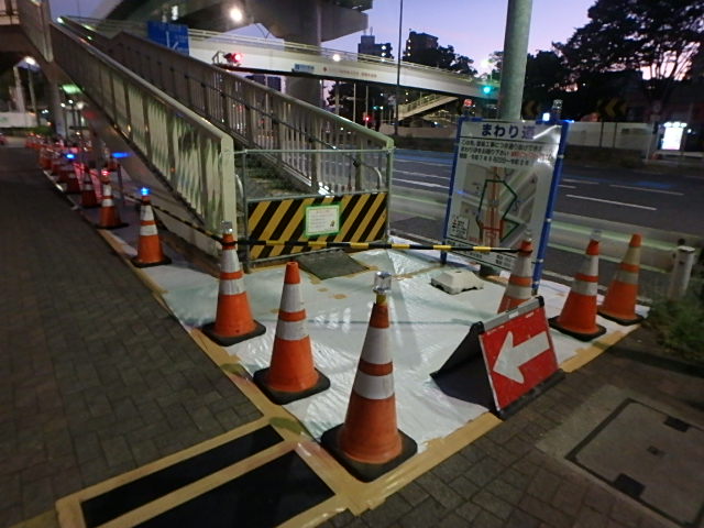 曇って涼しい朝でした。公園へ向かう鶴舞交差点の南側の歩道橋が工事中のため北側の歩道橋か地下道を当分使わなければなりません。